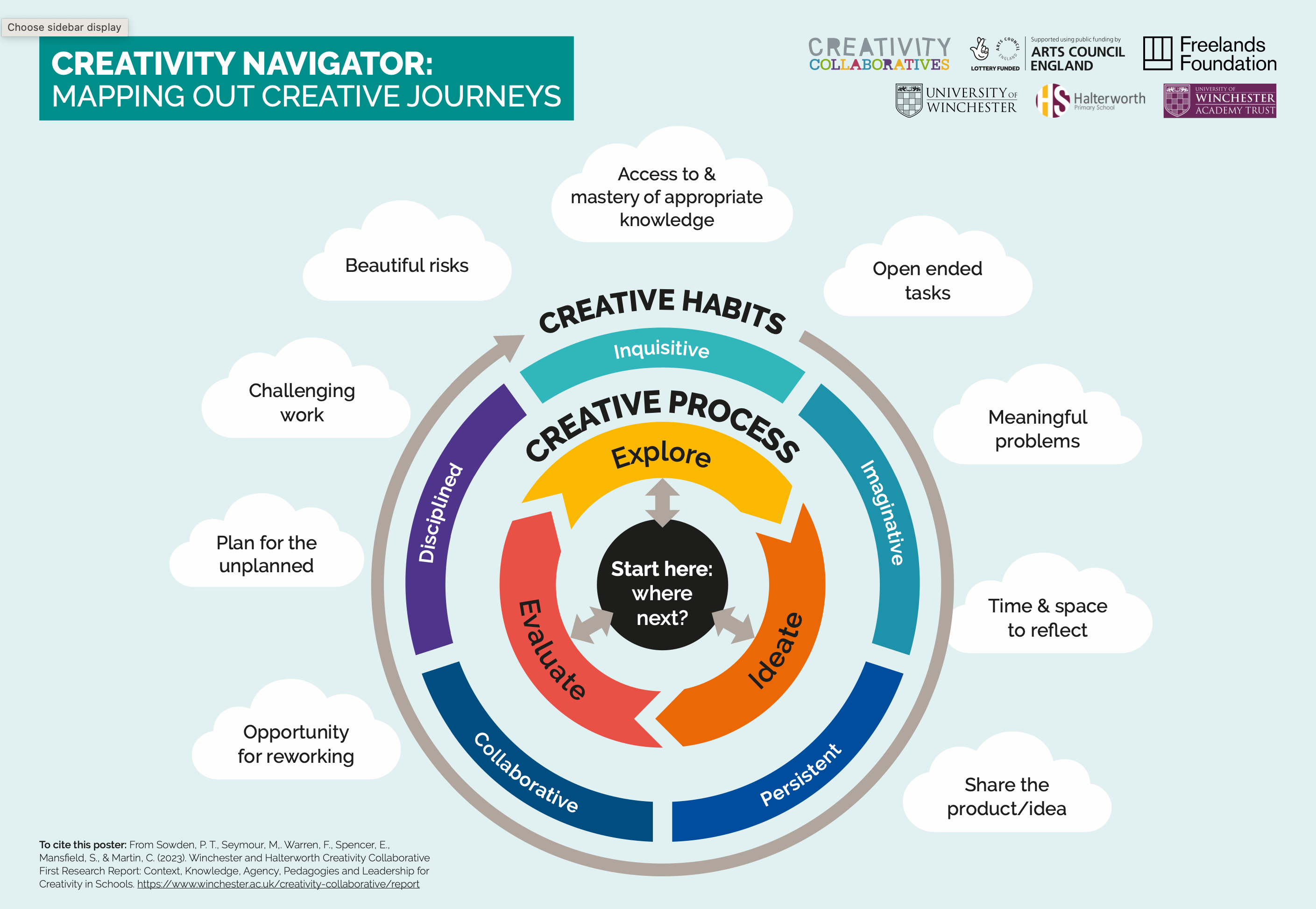 From Sowden, Seymour, Warren, Spencer, Mansfield and Martin (2023). Winchester and Halterworth Creativity Collaborative First Research Report: Context, Knowledge, Agency, Pedagogies and Leadership for Creativity in Schools.